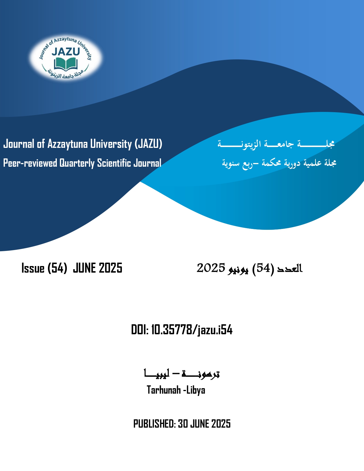 عدد 54 (2025)يسر هيئة تحرير مجلة جامعة الزيتونة أن تقدم للقراء والباحثون الكرام ، هذا العدد الجديد (54) لسنة 2025 والذي يأتي إستمراراً لرؤية ورسالة المجلة في دعم البحث العلمي ونشر المعرفة في مختلف التخصصات. يتضمن هذا العدد بحثاً واحداً ، حيث استقبلنا عدد (10) مقالات لبحاث يرغبون في نشر مقالاتهم في مجلة جامعة الزيتونة ، ولكن بسبب إن موقع المجلة كان تحت التطوير للعمل على تسجيل المجلة في منصة DOLJ وذلك بناء على تعليمات وزارة التعليم العالي والبحث العلمي بليبيا، قامت هيئة التحرير بإحاطة بحاثها الكرام عبر البريد الالكتروني بأن الموقع تحت التطوير وقد يتأخر إطلاقه ،وان القرار متروك لهم لمن يرغب في سحب بحثه أو الانتظار. سحبت عدد (6) أبحاث من هذا العدد ، ورفض عدد (3) ابحاث وتم قبول بحثاً واحداً، نأمل ان يسهم في إثراء المعرفة العلمية وأن يكون مرجعاً مفيداً للبحاث . وإذ ندعوا بحاثنا الاكارم الى مواصلة إسهاماتهم في نشر مقالاتهم في مجلتنا من خلال تقديمهم ابحاث أصلية ومتميزة ، فإننا نؤكد علي التزامنا الدائم بمعايير النشر وإخلاقيات البحث العلمي والحفاظ على النزاهة الاكاديمية.